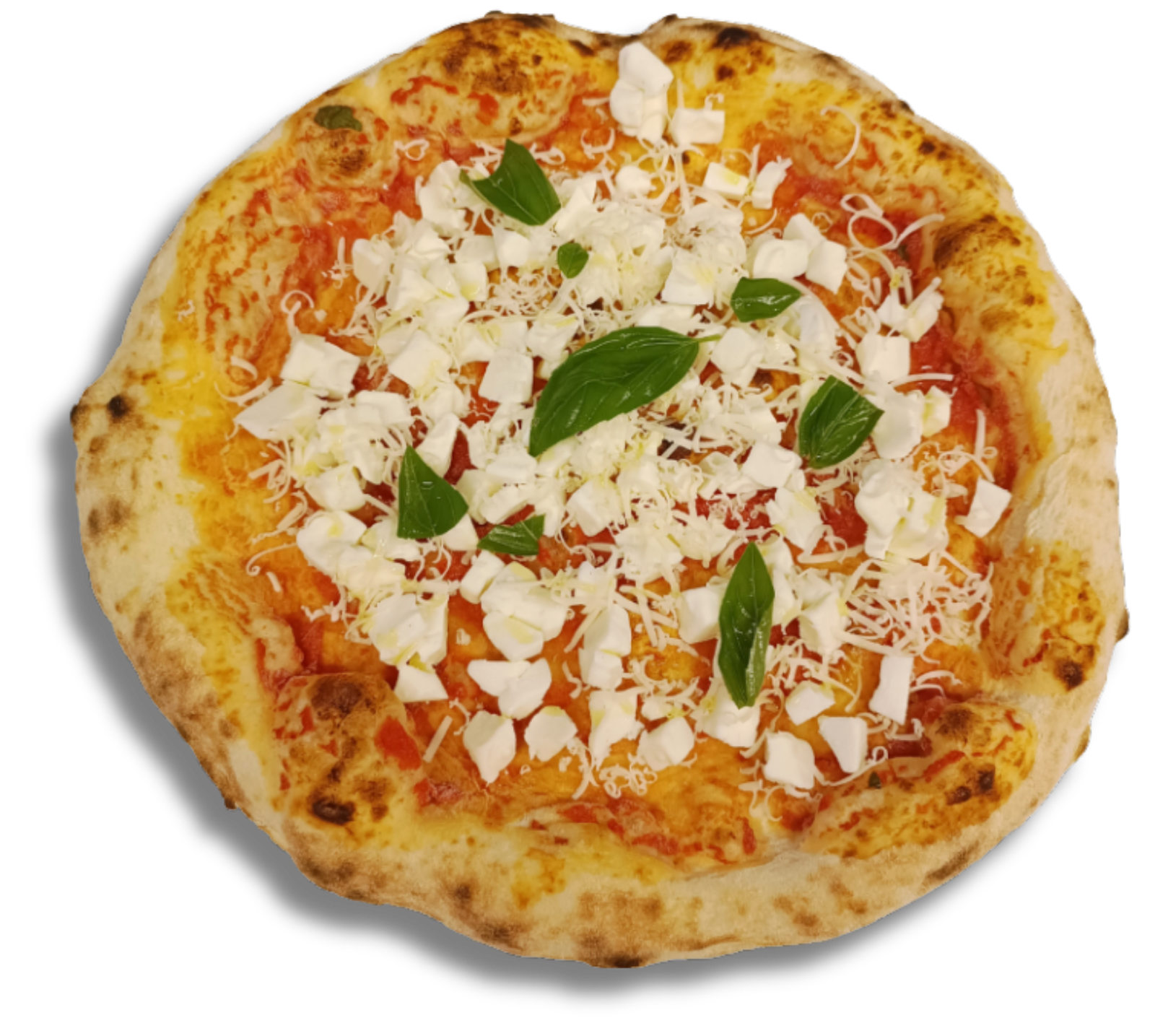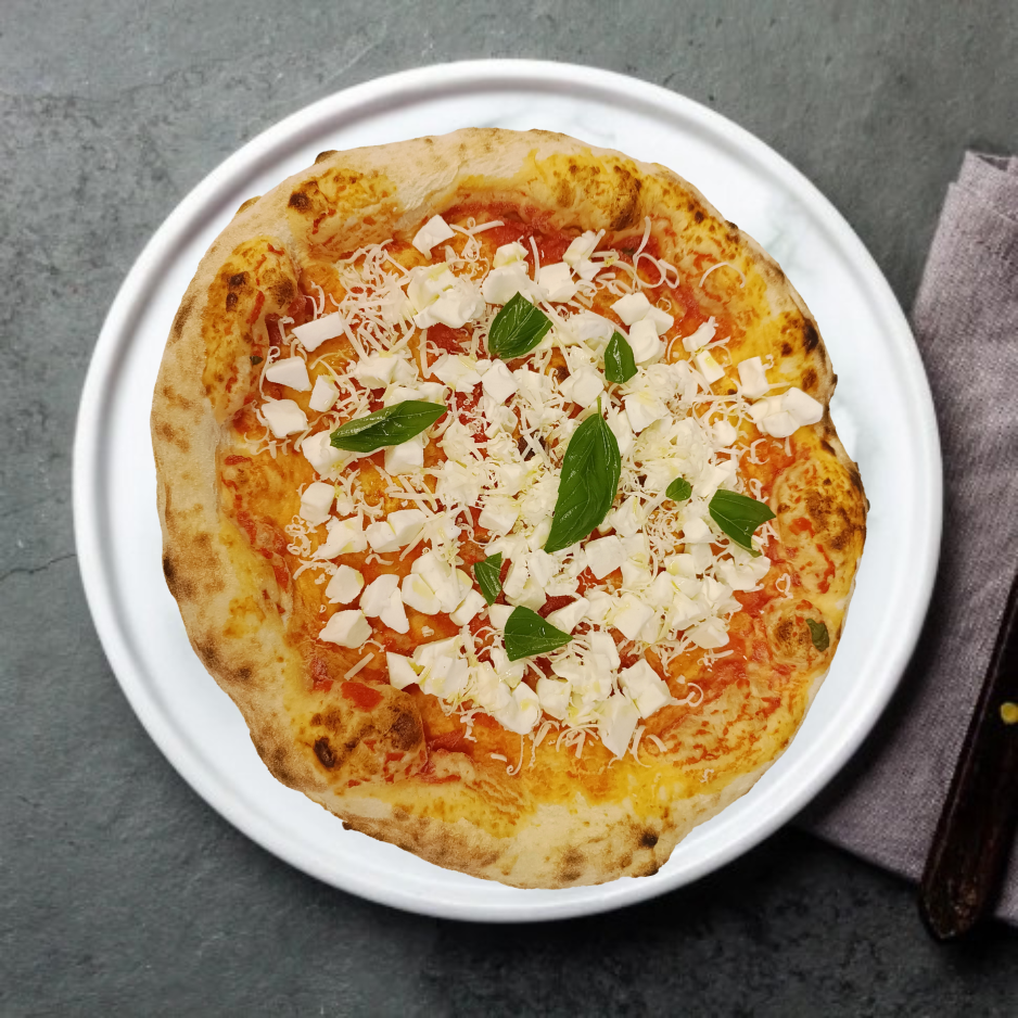 Coberta com queijo muçarela de búfala cremoso, queijo parmesão de alta qualidade, um toque de azeite de oliva e a medida perfeita de sal, cada pedaço proporciona uma experiência única. Assada em temperaturas acima de 400°C, nossa pizza mantém a textura ideal e o sabor irresistível.